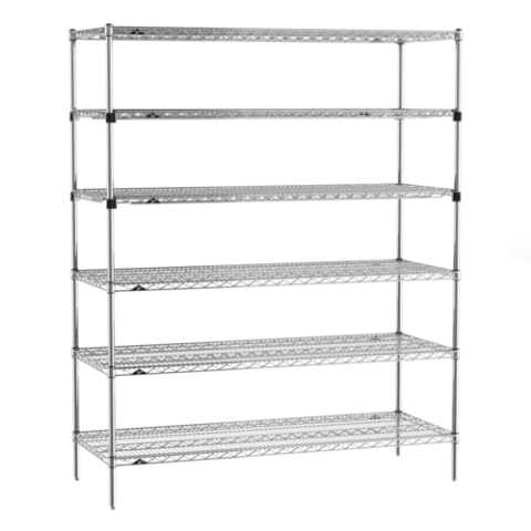 Super Erecta® Starter Shelving Unit, 60"W x 24"D x 74"H, (6) tiers, (4) Super Erecta wire shelves, (2) EZ-ADD shelves, (4) posts, chrome plated finish, KD, NSF