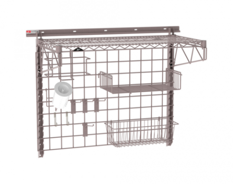 SmartWall Complete Kit for Prep, (1) shelf, components include a wall track, uprights, shelf supports, wire grid, accessories, and a wire shelf with corner hole plugs, Metroseal Gray finish, NSF (see spec sheet for components) (ships in one box)