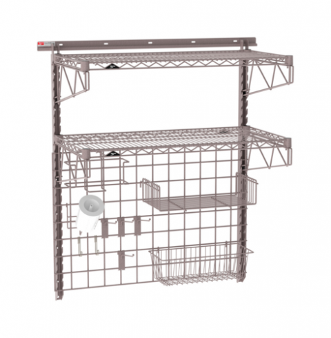 SmartWall Complete Kit for Prep, two-shelf, components include a wall track, uprights, shelf supports, wire grid, accessories, and (2) wire shelves with corner hole plugs, Metroseal Gray finish, NSF (see spec sheet for components) (ships in one box)