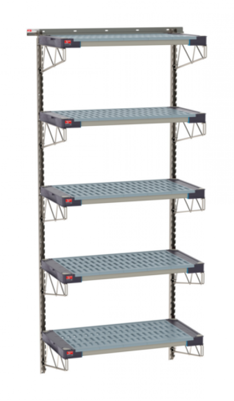 SmartWall Life Tall Wall Shelving Kit, five-shelf, type 304 stainless steel components: wall tracks, uprights, shelf supports, and (5) MetroMax 4 all polymer shelves with adapters, NSF (see spec sheet for components) (ships in one box)