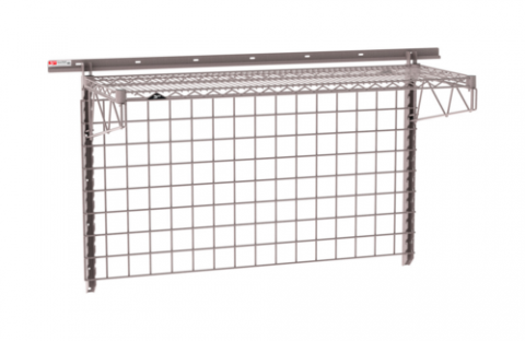 SmartWall Station Base Kit, (1) wall track, (2) uprights, (2) shelf supports, (1) 24 x 48 wire grid, (1) 18 x 48 wire shelf with corner hole plugs, Metroseal Gray finish, NSF (ships in one box)