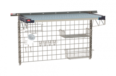 SmartWall Life Complete Kit for Prep, one-shelf, type 304 stainless steel components: wall track, uprights, shelf supports, wire grid, accessories, and a MetroMax 4 all polymer shelf with adapters, NSF (see spec sheet for components) (ships in one box)