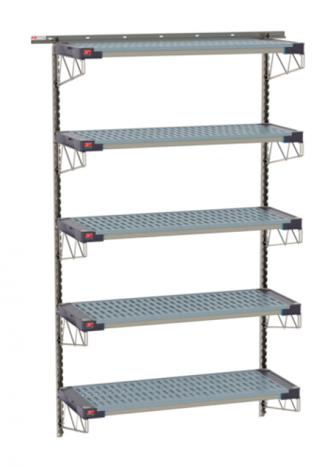 SmartWall Life Tall Wall Shelving Kit, five-shelf, type 304 stainless steel components: wall tracks, uprights, shelf supports, and (5) MetroMax 4 all polymer shelves with adapters, NSF (see spec sheet for components) (ships in one box)