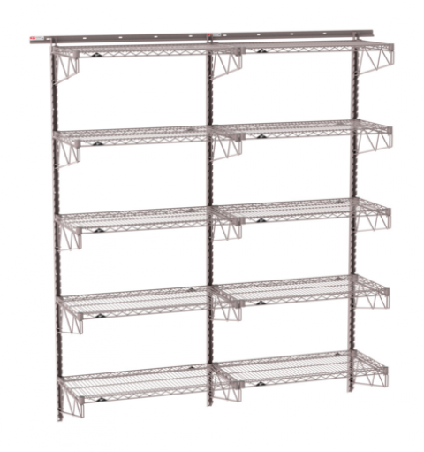 SmartWall Tall Wall Shelving Kit, double-wide, five-tier, components include wall tracks, uprights, shelf supports, and (10) wire shelves with corner hole plugs, Metroseal Gray finish, NSF (see spec sheet for components) (ships in one box)