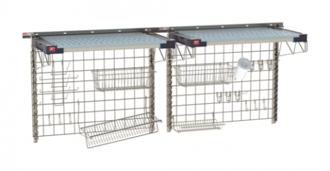 SmartWall Life Complete Kit for Sinks, double-wide, one-tier. type 304 stainless steel components: wall tracks, uprights, shelf supports, wire grids, accessories, and (2) MetroMax 4 all polymer shelves with adapters, NSF (see spec sheet for components) (ships in one box)