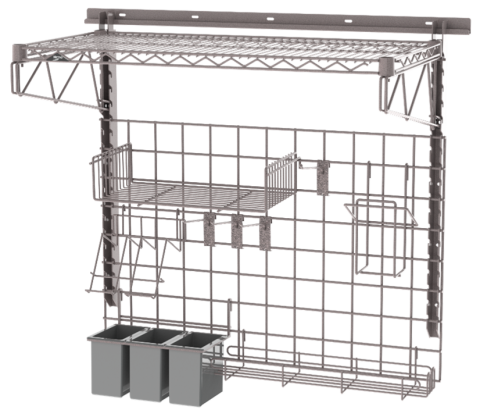 SmartWall Pizza Prep Station, 36"W x 20"D, SmartWall grid and accessories in Metroseal Gray epoxy-coated corrosion-resistant finish with Microban antimicrobial protection, NSF