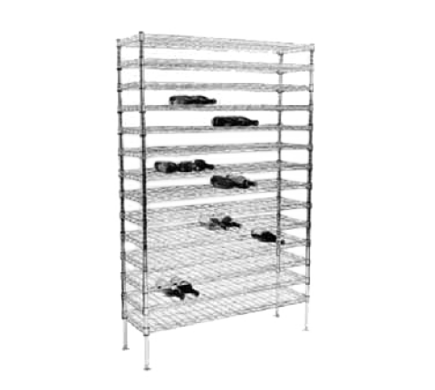 Super Erecta® Cradle Wine Shelving, wire, 48"W x 14"D x 74-3/4"H, (168) bottle capacity (750ml bottles), includes: (14) shelves, (4) post with triangular foot plates, (2) wall clamps, chrome plated finish, NSF