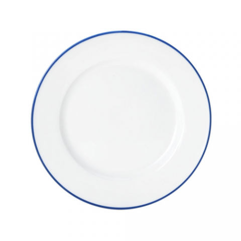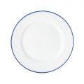 Bistro Plate, 8" dia., round, wide rim, dishwasher, microwave, freezer and oven safe, vitrified porcelain, white with blue band (must be purchased in case quantities)