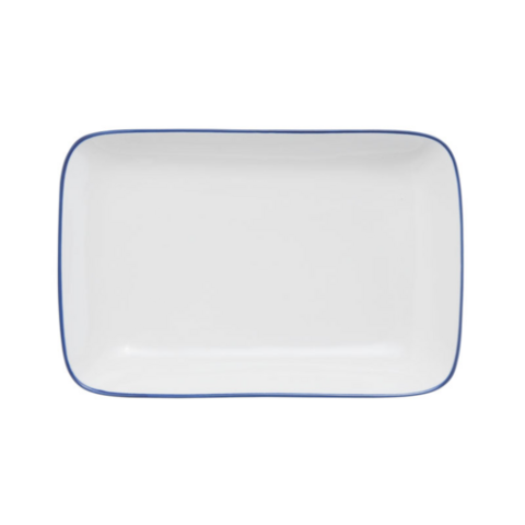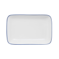 Bistro Plate, 14"L x 8-1/2"W, rectangular, coupe, dishwasher, microwave, freezer and oven safe, vitrified porcelain, white with blue band (must be purchased in case quantities)