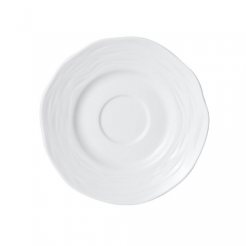Camilla Saucer, 4-1/2" dia., round, wide rim, embossed, dishwasher, microwave, freezer and oven safe, vitrified porcelain, bright white (fits 5260086) (must be purchased in case quantities)
