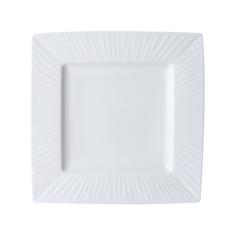 Onda Plate, 8-1/2"L x 8-1/2"W, square, wide rim, fluted, dishwasher, microwave, freezer and oven safe, vitrified porcelain, soft white (must be purchased in case quantities)