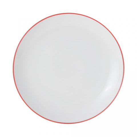 Bistro Plate, 9" dia., round, coupe, dishwasher, microwave, freezer and oven safe, vitrified porcelain, white with red band (must be purchased in case quantities)