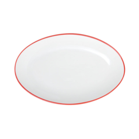 Bistro Entree Plate, 11-3/4"L x 7-1/2"W, oval, dishwasher, microwave, freezer and oven safe, vitrified porcelain, red (must be purchased in case quantities)