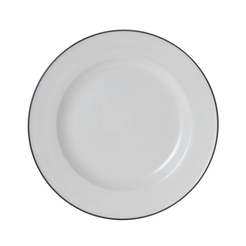 Bistro Plate, 11" dia., round, wide rim, dishwasher, microwave, freezer and oven safe, vitrified porcelain, white with black band (must be purchased in case quantities)