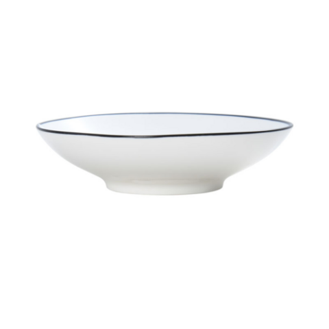 Bistro Bowl, 14.19 oz., 13.5 oz., 7-1/2" dia., round, shallow, coupe, dishwasher, microwave, freezer and oven safe, vitrified porcelain, white with black band (must be purchased in case quantities)