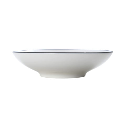 Bistro Bowl, 23.66 oz., 8-1/4" dia., round, shallow, coupe, dishwasher, microwave, freezer and oven safe, vitrified porcelain, white with black band (must be purchased in case quantities)