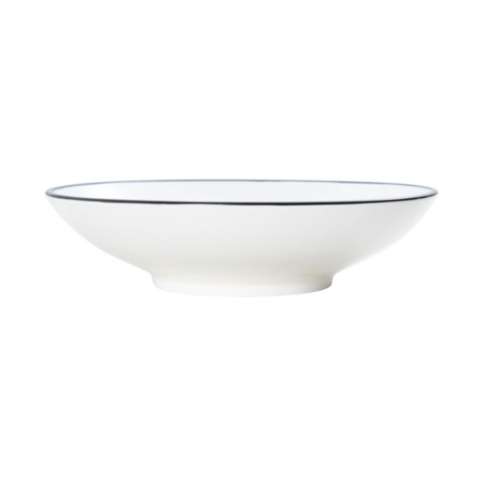 Bistro Bowl, 43.94 oz., 10-1/2" dia., round, shallow, coupe, dishwasher, microwave, freezer and oven safe, vitrified porcelain, white with black band (must be purchased in case quantities)