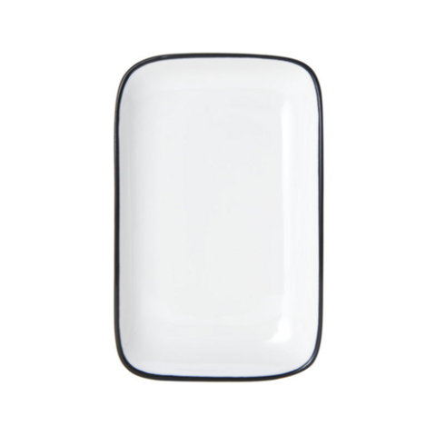 Bistro Plate, 8"L x 4-3/5"W, rectangular, coupe, dishwasher, microwave, freezer and oven safe, vitrified porcelain, white with black band (must be purchased in case quantities)