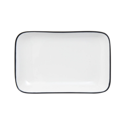 Bistro Plate, 9"L x 5-1/5"W, rectangular, coupe, dishwasher, microwave, freezer and oven safe, vitrified porcelain, white with black band (must be purchased in case quantities)