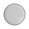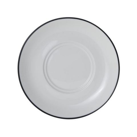 Bistro Saucer, 6-3/4" dia., round, dishwasher, microwave, freezer and oven safe, vitrified porcelain, white with black band (fits 5260394) (must be purchased in case quantities)