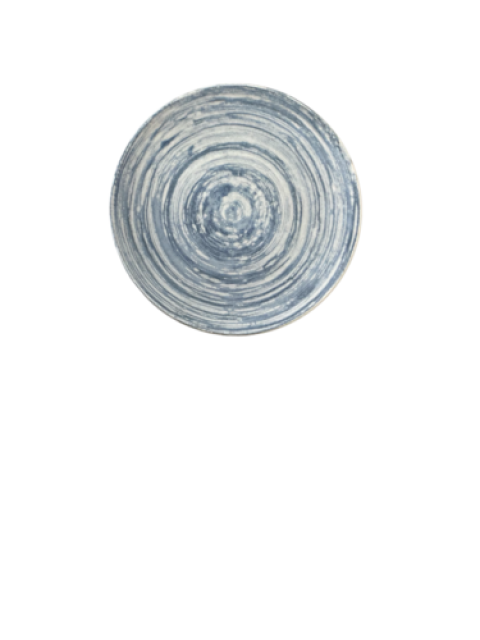 1972 Coupe Plate, 8.25", Swirl Blue, vitrified stoneware (must be purchased in case quantities)