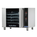 Turbofan® Convection Oven, electric, countertop, 24-5/8" assembled height, (4) 1/2 size sheet or hotel pan capacity, 3-1/8" tray spacing, digital display time and temperature controls, electronic thermostat control, temperature range 150 - 500° F, rethermalization & roast functions, stainless steel front, sides and top exterior, hinged field reversible twin pane glass door, porcelain interior, 3" adjustable stainless steel feet, ETL, NSF
