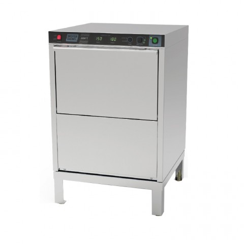 Craft Series Glasswasher, undercounter, 24"W, high temperature, fresh water sanitized with a built-in 9 kW electric booster heater for High Speed temperature recovery, approximately (25) racks/hour capacity,12-1/8"H door clearance, 2 kW tank heater, Soft Start, dedicated rinse arms, built-in detergent & rinse-aid dispensing pumps, auto-clean cycle flushes tank at shutdown, delime feature, heavy duty cycle, microprocessor controls, digital LED temperature display, advanced service diagnostics, counter balanced door, pumped drain, includes (1) flat & (1) peg rack, stainless steel construction, front leveling feet, 1 HP wash pump, cETLus, NSF