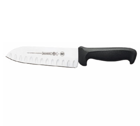 Santoku Knife, 7", granton edge, high carbon/no stain blade, molded black polypropylene handle, treated with sanitized antimicrobial protection (snap), NSF