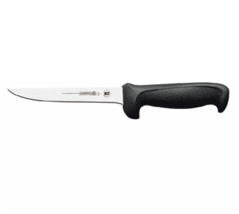 Boning Knife, 6", wide stiff, high carbon/no stain blade, molded black polypropylene handle, treated with sanitized antimicrobial protection (snap), NSF