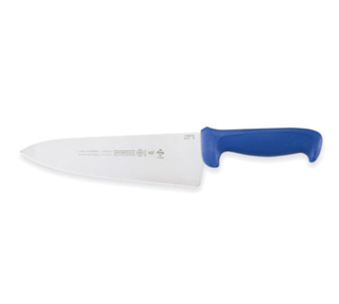 Cook's Knife, 8", 2-1/2" wide at handle, high carbon/no stain blade, molded blue polypropylene handle, treated with sanitized antimicrobial protection (snap), NSF