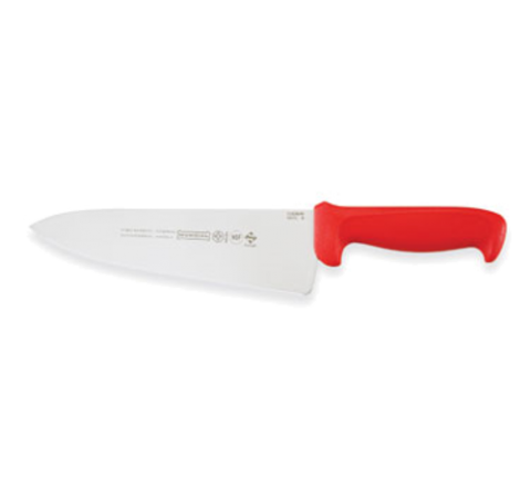 Cook's Knife, 8", 2-1/2" wide at handle, high carbon/no stain blade, molded red polypropylene handle, treated with sanitized antimicrobial protection (snap), NSF