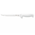 Fillet Knife, 8", narrow flexible, high carbon/no stain blade, molded white polypropylene handle, treated with sanitized antimicrobial protection, NSF (snap)