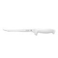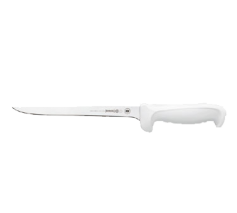 Fillet Knife, 8", narrow stiff, high carbon/no stain blade, molded white polypropylene handle, treated with sanitized antimicrobial protection, NSF (snap)