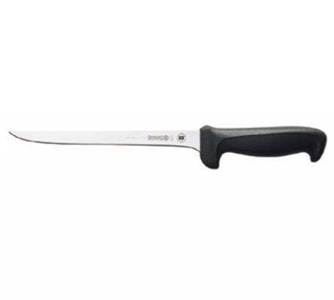 Fillet Knife, 8", narrow stiff, high carbon/no stain blade, molded black polypropylene handle, treated with sanitized antimicrobial protection (snap), NSF
