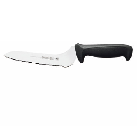 Offset Sandwich Knife, 9", serrated edge, high carbon/no stain blade, molded black polypropylene handle, treated with sanitized antimicrobial protection (snap), NSF