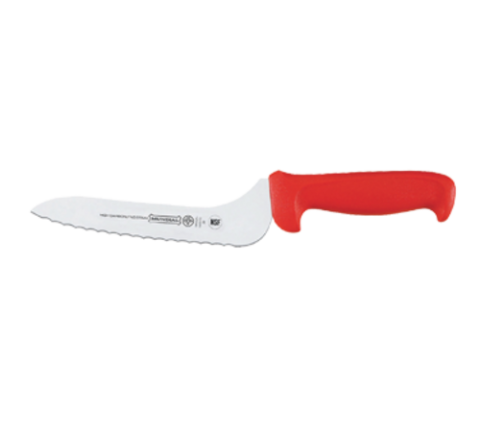 Offset Sandwich Knife, 9", serrated edge, high carbon/no stain blade, molded red polypropylene handle, treated with sanitized antimicrobial protection (snap), NSF