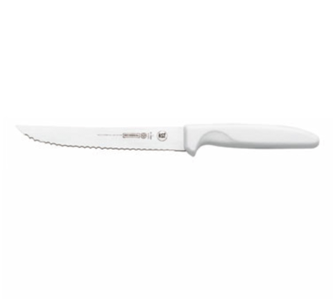 Utility Slicer, 6", serrated edge, high carbon/no stain blade, molded white polypropylene handle, treated with sanitized antimicrobial protection, NSF (snap)
