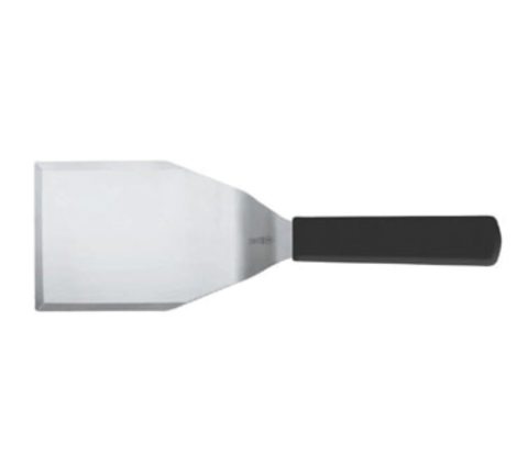 Heat Resistant Steak & Burger Turner, 5" x 4", stainless steel blade, molded black polypropylene handles, withstands temperature up to 446°F, treated with sanitized antimicrobial protection, (snap), NSF