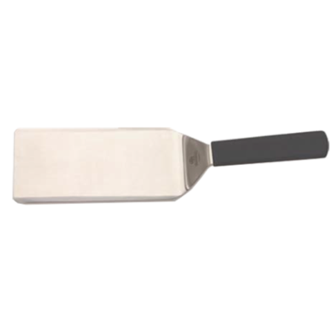 Turner, 4" x 8" x 15", beveled edges on two sides, stainless steel blade, black polypropylene handle, withstands temperature up to 446°F, treated with sanitized anti-microbial protection, NSF