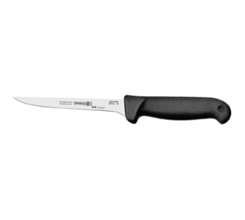 Boning Knife, 6", straight, narrow flexible, high-carbon stainless steel blade, double injection molded black polypropylene handle, treated with sanitized antimicrobial protection, NSF