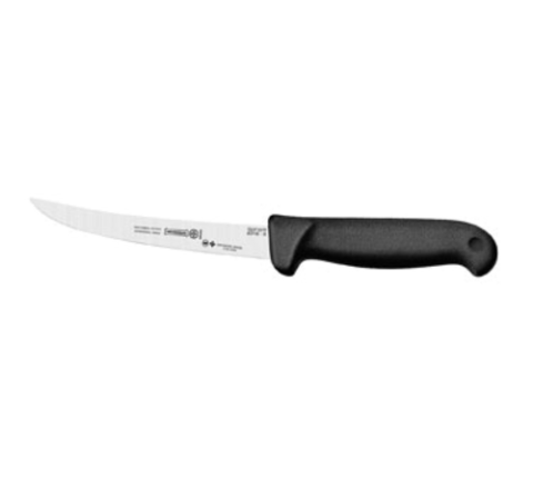 Boning Knife, 6", curved, narrow, high-carbon stainless steel blade, double injection molded black polypropylene handle, treated with sanitized antimicrobial protection, NSF