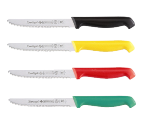 Utility/Bar Knife, 4-1/4", Serra sharp serrated, round tip high carbon/no stain blade, polypropylene handle (12 pieces - 3 each: red, black, yellow and green), NSF