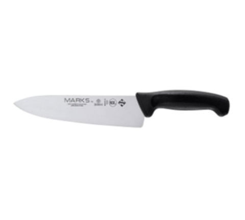 Marks Chef's Knife, 8", high-carbon Japanese steel blade, double injection molded black polypropylene handle, treated with sanitized antimicrobial protection, NSF