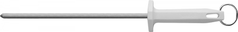 Butcher's Steel, 10", round/polished cut, white poly handle with hanging ring, NSF (snap)