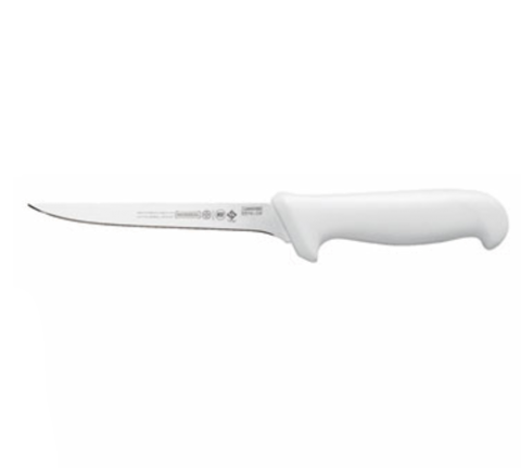 Boning Knife, 6", narrow stiff, high carbon/no stain blade, molded white polypropylene sanitized handle, treated with sanitized antimicrobial protection, NSF (snap)