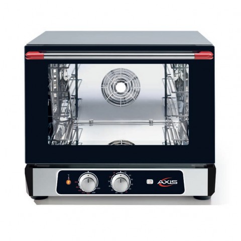 Axis Convection Oven with Humidity, electric, countertop, 22-1/20'W x 25-12/25"D x 20-17/20"H, manual controls,120 minute timer, 86°-540°F temperature range, accommodates (4) half-size pans, 3" spacing, double-wall glass oven door, interior halogen light, (1) automatic speed reversing 3200 rpm fan, electro valve for direct water connection, stainless steel construction, 2700 watts, 208-240v/60/1-ph, cord with NEMA 6-20P, ETL-Sanitation, cETLus (FOR SALE IN NORTH AMERICA)