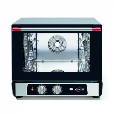 (FOR EXPORT ONLY) Axis Convection Oven with Humidity, electric, countertop, 22-1/20'W x 25-12/25"D x 17-9/10"H, manual controls,120 minute timer, 86°-540°F temperature range, accommodates (3) half-size pans, 3" spacing, double-wall glass oven door, interior halogen light, (1) automatic speed reversing 3200 rpm fan, electro valve for direct water connection, stainless steel construction,1650 watts,220-240v/50/60/1-ph, ETL-Sanitation, cETLus (contact factory for price)