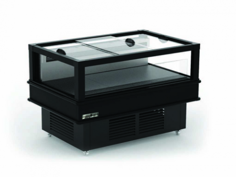 Hydra-Kool Island Showcase Merchandiser, dual temperature (refrigerator/freezer), 15.2 cu.ft. capacity, 82-1/10"W x 41-1/5"D x 40-1/2"H, self-contained refrigeration system, temperature range -10°F - 42°F, (4) sides of tempered glass, sliding glass lid, stainless steel bumper guards, black exterior, (4) swivel casters (2 locking), R290 Hydrocarbon refrigerant, 220v/60/1-ph, cETLus, ETL-Sanitation