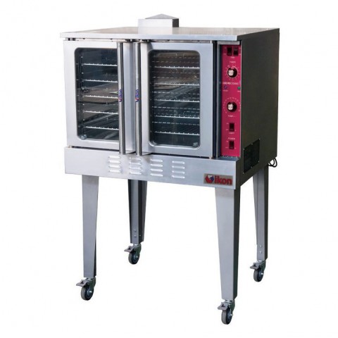 IKON Cooking Convection Oven, electric, single-deck, standard depth, electronic timer with buzzer, 2-speed 1/2 hp fan, (2) interior halogen lights, independent doors with windows, includes (5) wire racks, (11) position rack glides, porcelain interior, stainless steel front, top & sides, (4) stainless steel legs with locking casters, cETLus, ETL-Sanitation