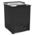 IKON Refrigeration Glass Chiller, 24"W, 2.67 cu. ft., stainless steel top, (1) stainless steel sliding door (lockable), (2) shelves, electronic thermostat, digital LED temperature display, -4° to -5°F temperature range, self-defrosting evaporator, stainless steel interior, black exterior, bottom mount self-contained refrigeration, R290 refrigerant, 1" wheels, 1/2 HP, 115v/60/1-ph, 2 amps, NEMA 5-15P, cETLus, ETL-Sanitation